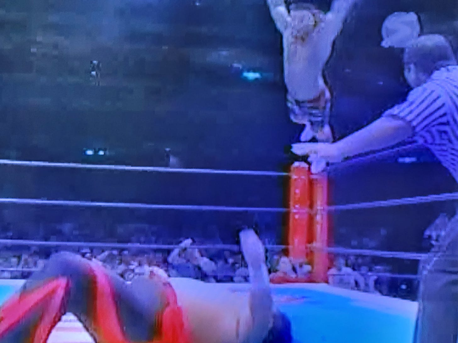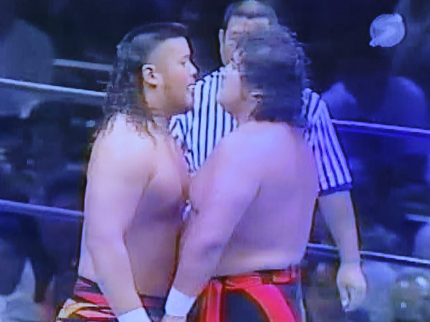 Muto mounts a comeback, culminating in a moonsault (that Ric had to slightly scooch in to receive) for three! We didn't get the full match, but what we saw was awesome. Absolutely incredible drama here.