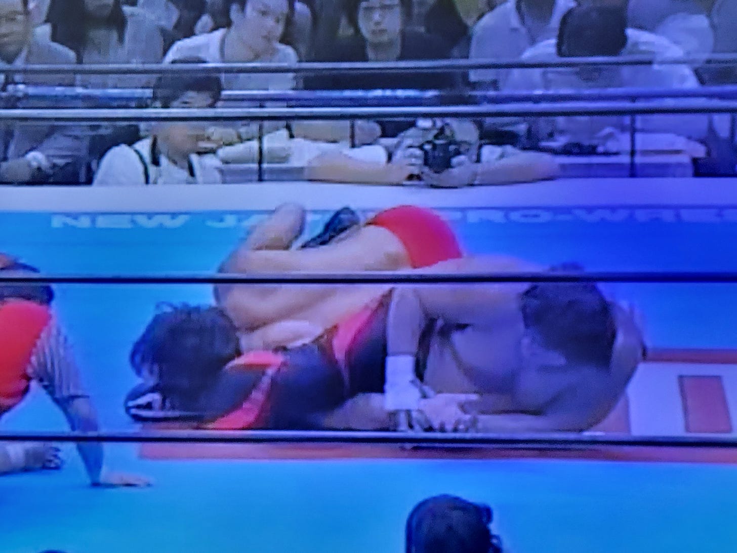 Frankensteiner from Muto gets two! Moonsault lands…but Hash kicks out! Muto immediately goes for another one, and THAT is enough for the three and the G1 Climax tournament win!