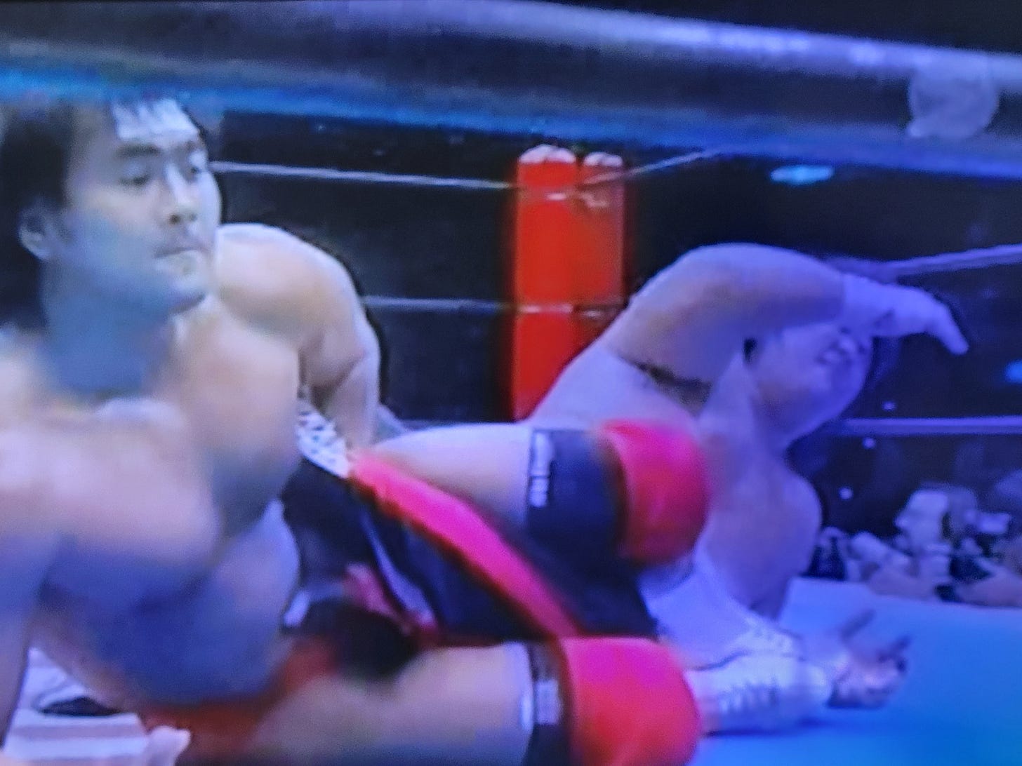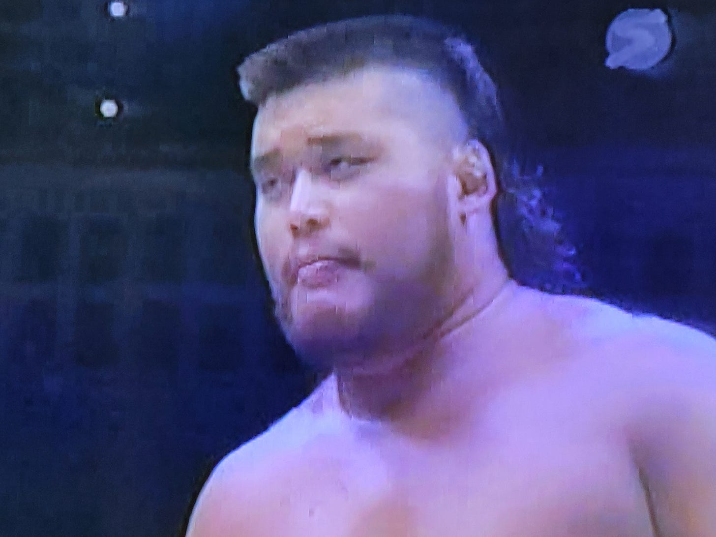 Hash tries to withstand the assault, but the headbutts eventually knock him down. Tenzan goes for a charge, but Hash fires back with a BIG dropkick! Hash lays in some sturdy kicks and drops a big elbow for two. Tenzan tries to power through some Hash kicks, but a big one to the head knocks his dick in the dirt, as does a DDT. Tenzan ducks a spinning heel kick and lands one of his own, then we get some more Mongolian chops, including one off the top rope! Top rope headbutt gets two!