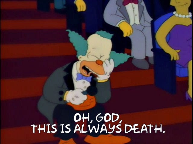 LOUD “KILL THE CLOWN!” chants fill the Worcester Centrum, and the place pops for Mercy’s win. OK, that was great. The fans have had ENOUGH of the clown, and I can’t blame them. Heel Doink as portrayed by Matt Bourne was AWESOME, but once the babyface turn happened and Doink started being played by competent-yet-bland Ray Apollo, it became the drizzling shits.