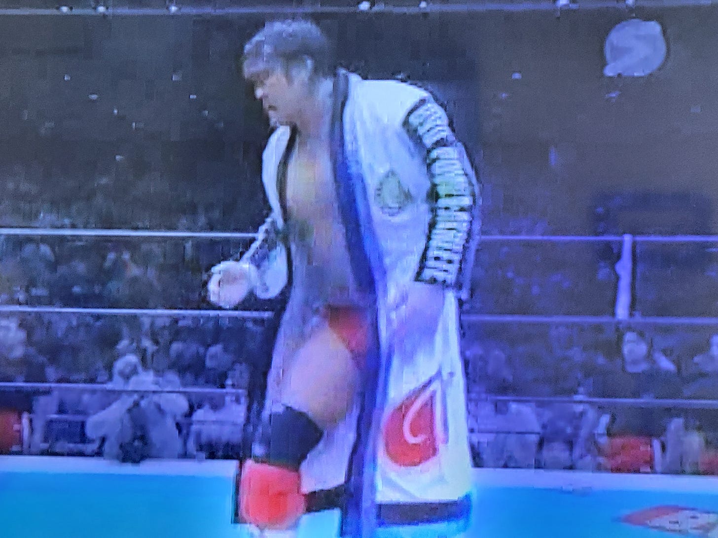 Post-match, Muto is awarded some big-ass trophies (but not the massive G1 trophy and flag that we’ve seen in recent years), a BVD jacket, and a giant check. Hash raises Muto's hand because sportsmanship. Muto cuts an impassioned promo to take things home.