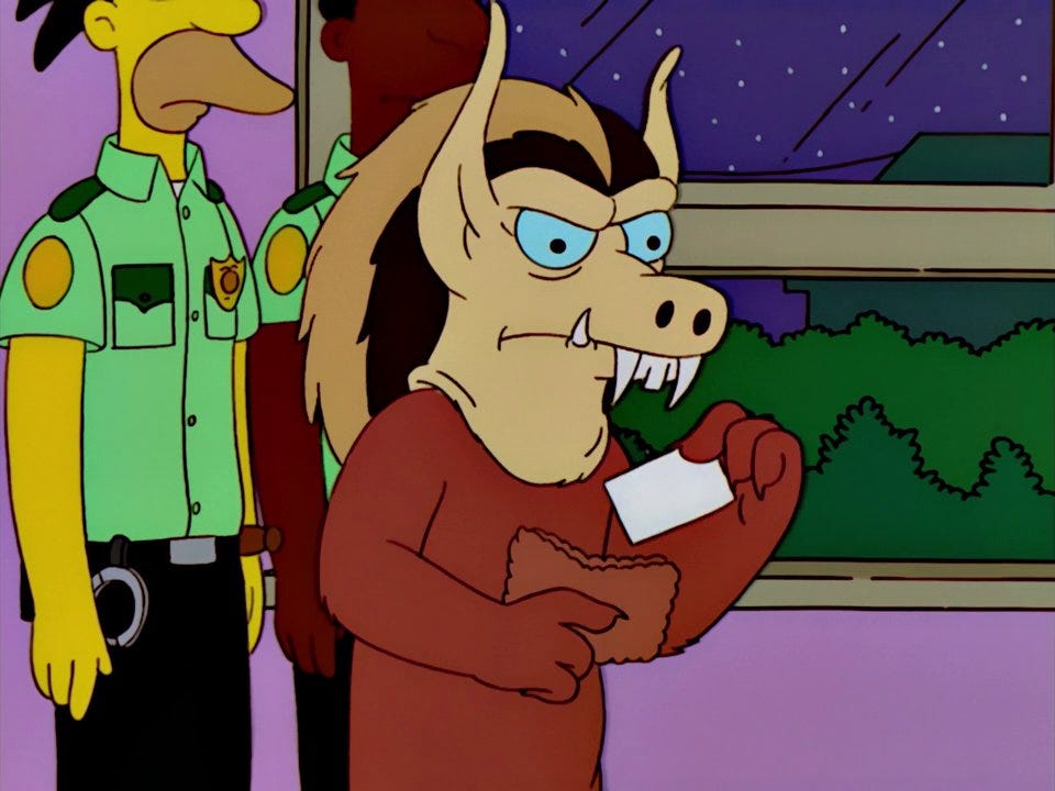 Meng comes out wearing what looks like a boar head helmet. It kinda reminds me of that monster in Homer Simpson's “SpringShield” commercial.