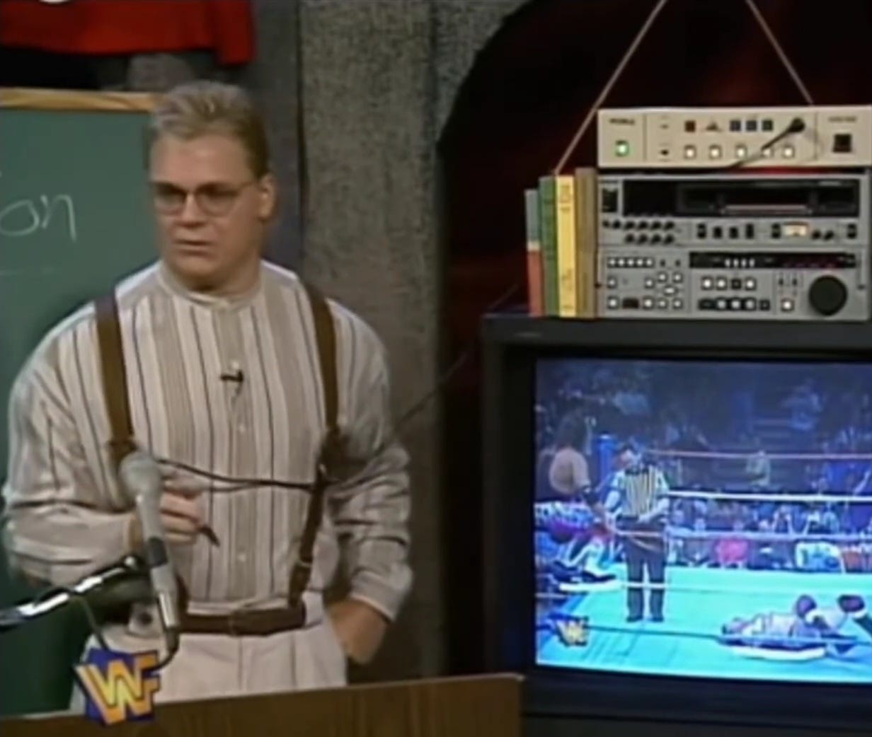 This was firmly in the “movie-obsessed weirdo” stage of the character, but Dustin Rhodes already had some of the characteristics in place (the mannerisms, way of speaking, etc.). The Hollywood aspect was apparently inspired by his father Dusty's love of movies, and Vince McMahon came up with the ideas of the name and Dustin being covered in gold. This specific vignette was written and produced by Vince Russo, BRO.